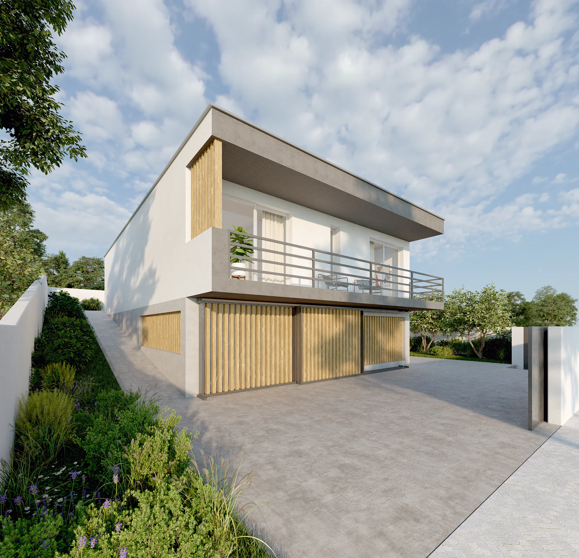 O projeto é concebido para tirar partido do declínio natural do terreno. O piso -1 é destinado ao estacionamento interior, aproveitando o formato de semicave para oferecer uma solução prática e